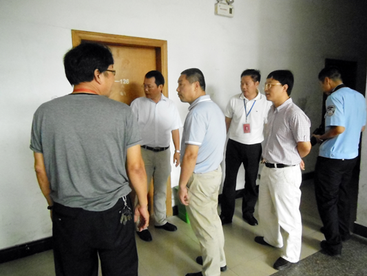 圖二為陶誠(chéng)華一行檢查職工宿舍生活垃圾分類情況